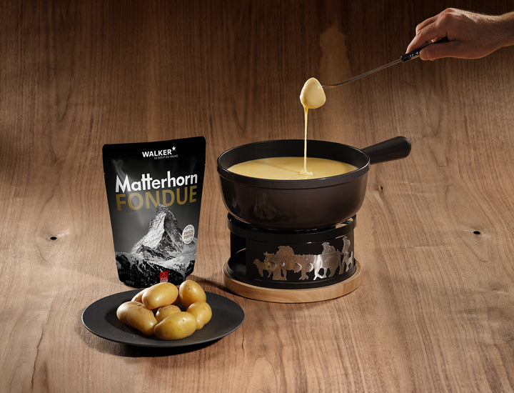 Mit dem neuen Matterhorn Fondue bringt die Walker Bergkäserei eine Spezialität auf den Tisch, inspiriert von der majestätischen Bergwelt. Ausgewählte Walker Hart- und Halbhartkäse, verfeinert mit unserem würzigen Raclettekäse, verschmelzen zu einer kräftigen und zugleich cremigen Mischung, einzigartig, charakterstark und unverkennbar wie das Matterhorn selbst. Ein Gipfel des Genusses für alle, die das Besondere suchen.
